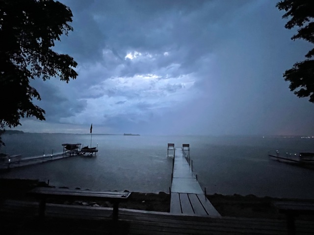 Kristi offered us the overnight use of a family lake house on Storm Lake. How amazing. On March 1 I had no idea a place like Storm Lake even existed. A few weeks later we were receiving support from Storm Lake, courtesy of Mission Central. I remember addressing envelopes and thinking what a cool name for a town! I imagined what it might look like, dark, imposing clouds gathered overhead to unleash a downpour. Now, just a few months later we were standing on the back porch looking past the pier and over Storm Lake towards the darker line of incoming rain. We watched as it advanced across the lake, engulfing and shrouding the small island in the center before downpouring overhead. So surreal and so beautiful, and so different from the typical weather either where we’ve been living or where we’re living now.