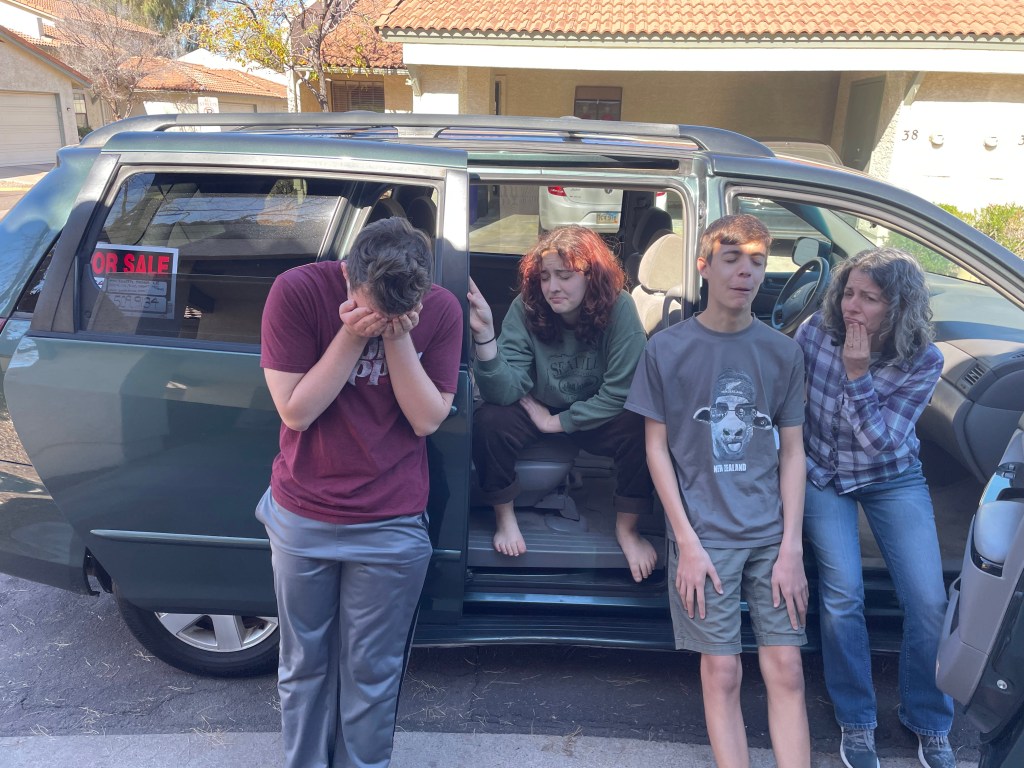 Caedmon noticed first – the big red pick-up truck pacing us in the next lane, passenger window down and a young woman gesticulating at our van and telling us to roll our window down. Unusually, I wasn’t driving, Gena was. She rolled her window down and the girl asked us how much we were asking for our van.