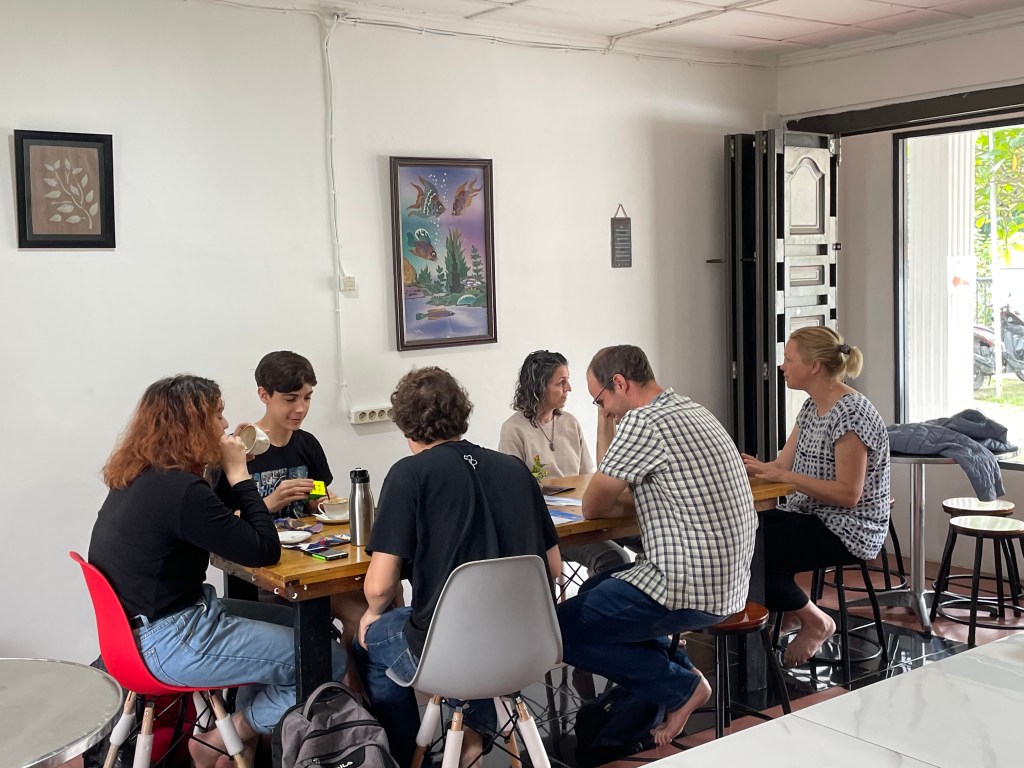 The biggest aspect of our lives in Indonesia at this point is language learning. Five days a week from 8:30am to 10:30am we are in formal classrooms. Gena and I are in one class, the kids are in another, but we’re all at the exact same place, covering the same material. In Unit 4 we were in the same class together, which was a lot of fun. But in Units 5 and 6 we’re separated again. Gena and I have a younger couple from South Africa as classmates.