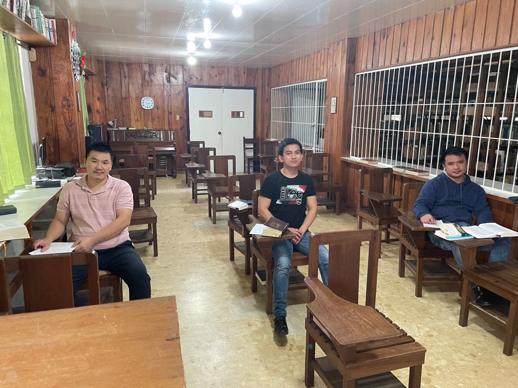 These are brand new first-year students to the seminary. Nelson (taking the photo) is coming into the ministry after a career in business. Romel, Mateo and Romar spent some time as farmers before the Holy Spirit’s Call on their lives became clear. Now they live and study in Baguio. Together we did a review of the entire Old Testament in two weeks!