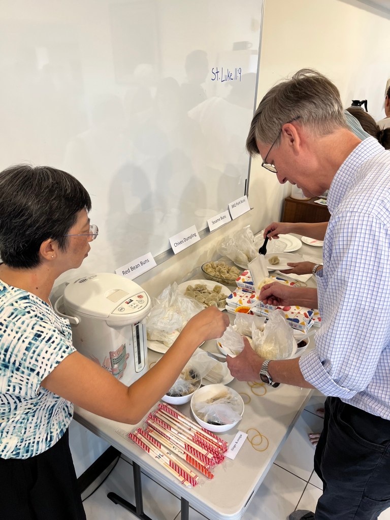 Food is obviously the heart of most any gathering, and there was more of it than Wednesday dinner. Each day lunch was provided, again showcasing various local flavors. Above Irene Paul and Rev. Dr. Steve Oliver explore a variety of steamed dumpling options we had for lunch on Thursday.