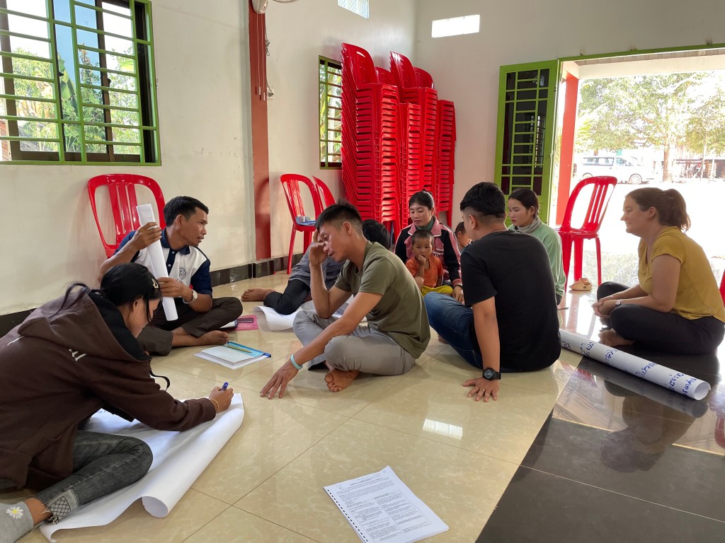 Community Health Evangelism (CHE) helps locals determine their needs and the best way for them to meet those needs with their own resources. It’s a grass-roots approach to development. Aimee Cima, Southeast Asia Regional Mercy Manager is on the far right observing a brainstorming exercise.