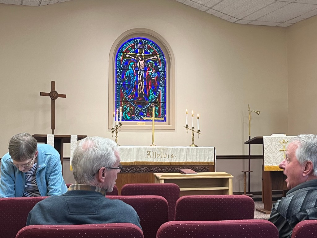 Today was a long day behind the wheel. From the beautiful family cabin we were loaned in Salida, I had a two hour drive back to Colorado Springs for a 10am meeting at Immanuel Lutheran, Colorado Springs. I joined them for morning worship in their chapel led by Pastor Jonathan Kern (first photo below). Then I had the opportunity to present to their midweek Bible study group. Lots of good questions and engagement by the folks in attendance.