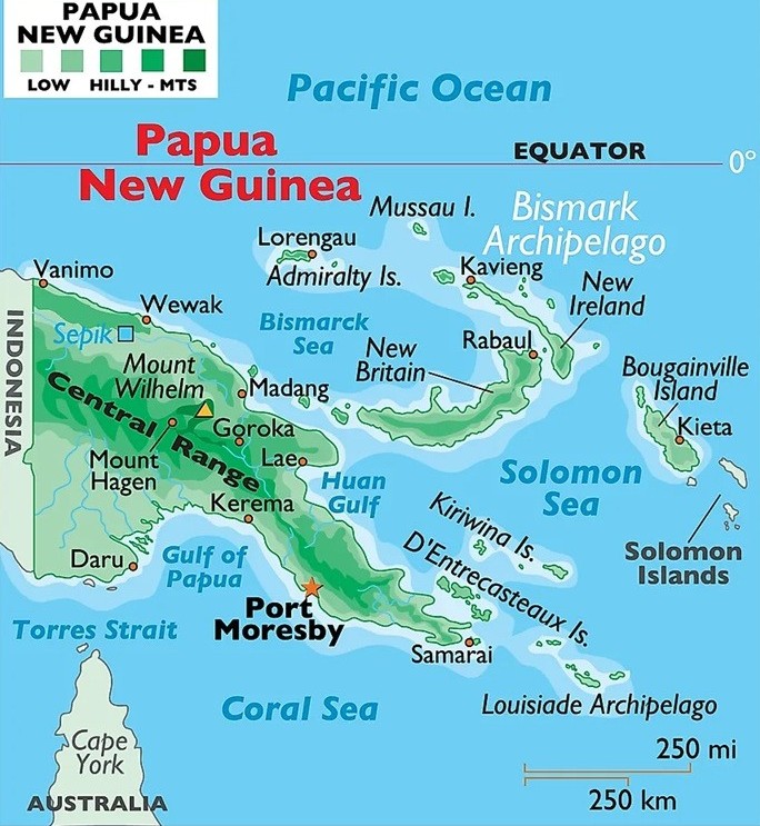 Port Moresby is kind of center on the map above. Look directly north (up) from it and you’ll see Lae on the northern side of PNG. It doesn’t look like a long ways a way, and it’s not. Less than 400 Km. Shorter than driving from Los Angeles to Phoenix! But there are no highways (or other roads) that link Lae and Port Moresby. The only way to get there from here, so to speak, is a 45-minute flight.