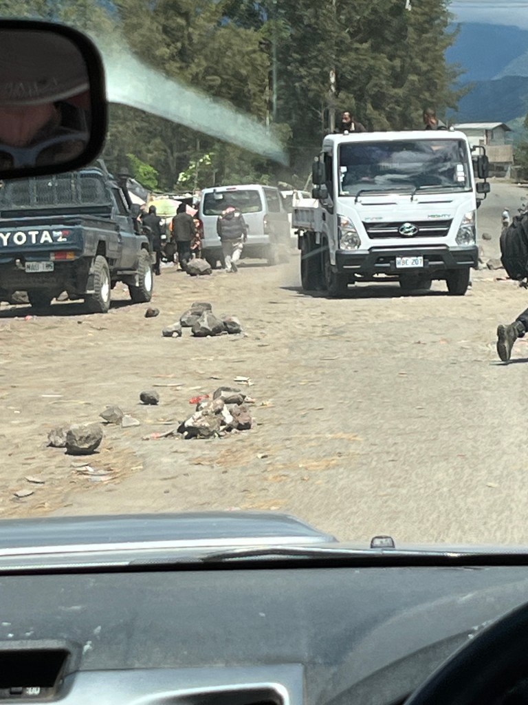 Speaking of fighting, there was tribal warfare occurring during our visit. It seemed to have subsided slightly by the time we arrived, but only very slightly. There was still palpable tension throughout the region. In populated areas, rocks were strewn through the streets, forcing cars to slow down and make their way through the maze carefully. This would give people time to identify who was in the vehicle – or even stop the vehicle.