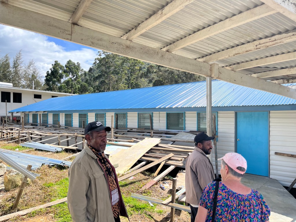 After the campus walkabout Mary Anne took us on a drive to see some other notable areas. At my request we stopped and saw the Enga Take Anda, or cultural center, located in the Wabag area. It includes a respectable history of life in PNG both before and after incursions from Europeans. Some photos taken by Gena’s father, Lee Meyer, during their service in PNG 50 years earlier are showcased here.