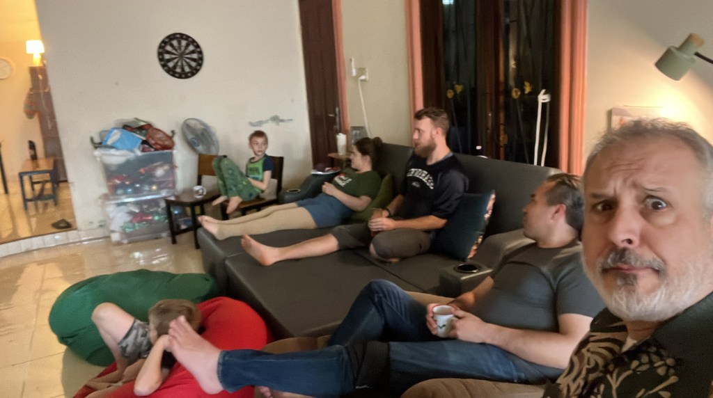 So of course we joined in the annual American tradition – watching the Superbowl! We’ve done this almost every year with friends of ours in Medan. We have to get up early – kickoff is at 6:30am Monday morning, Medan time. Our snacks this year included a ceviche with chips, breakfast pizzas, and literal pounds of bacon. Hard to get more American than that!
